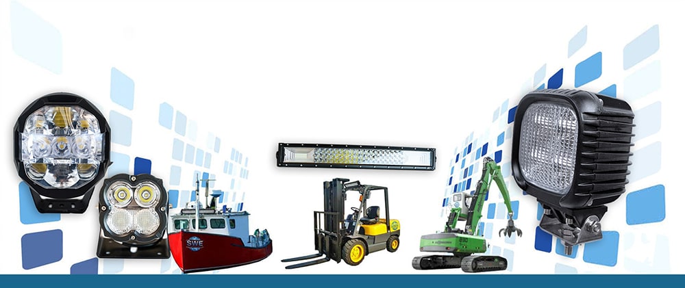 SWE LED Lights. supplies a complete line of premium LED lighting products for mechanized industrial equipment and marine applications. Our lighting systems are in use worldwide on earthmoving and other off-road equipment, lift trucks, fishing trawlers, etc., and are supplied to the Mining, Pulp and Paper, Forestry, Agricultural, Commercial Fishing, Peat Moss and other industries.