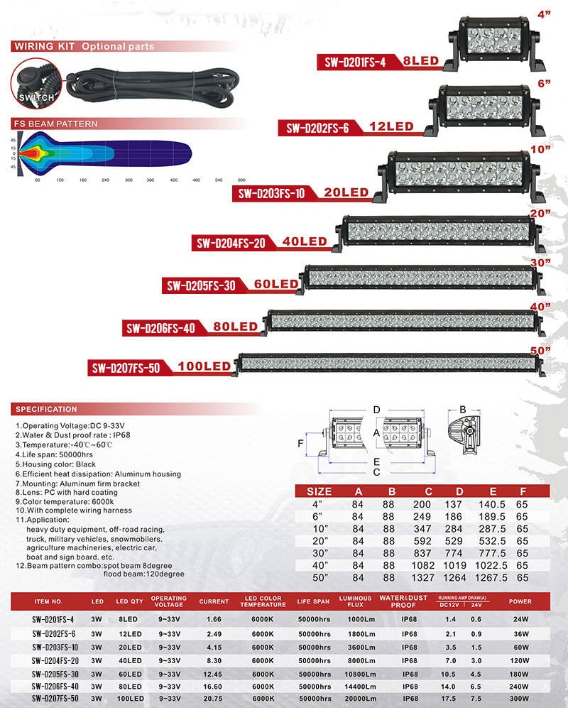 SW-D206FS-40 3W 40LED 9-33V 7.420 6000K 50,000 hrs 4800 Lm IP68 8 4 120W