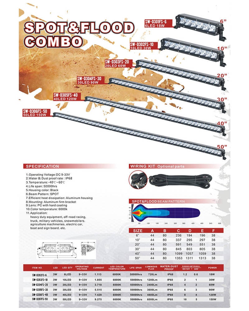 SW-D207FS-50 3W 50LED 9-33V 9.275 6000K 50,000 hrs 6000 Lm IP68 10 5 150W